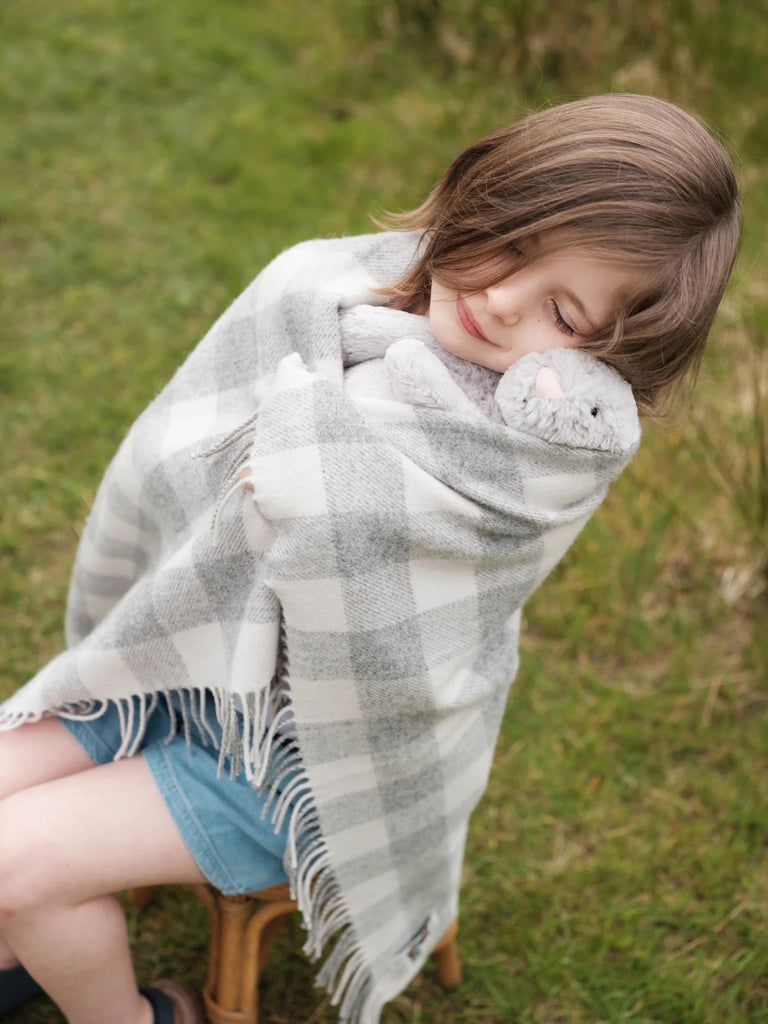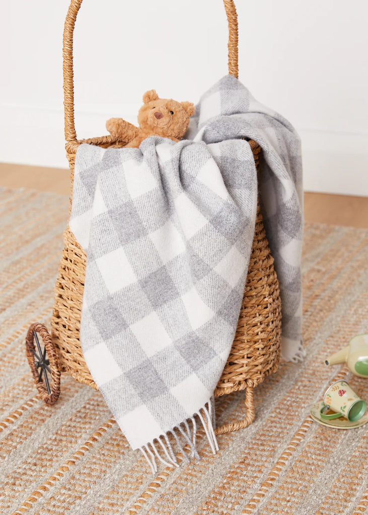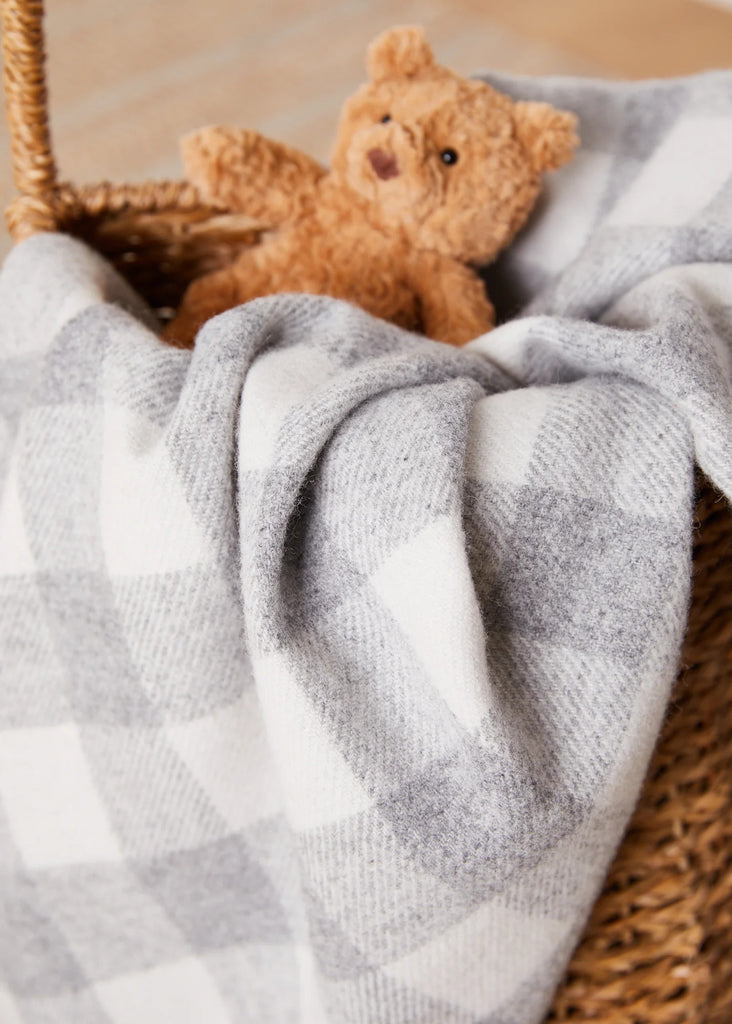 Woven from the finest lambswool yarn and created with expertise at our County Mayo mill, the Foxford Pearl Grey Check Lambswool Baby Blanket offers exceptional softness. Our brand has a rich history; generations have treasured our blankets, which make perfect gifts. Each style showcases outstanding quality and craftsmanship built to last. Every Foxford baby blanket arrives beautifully in a gift box.